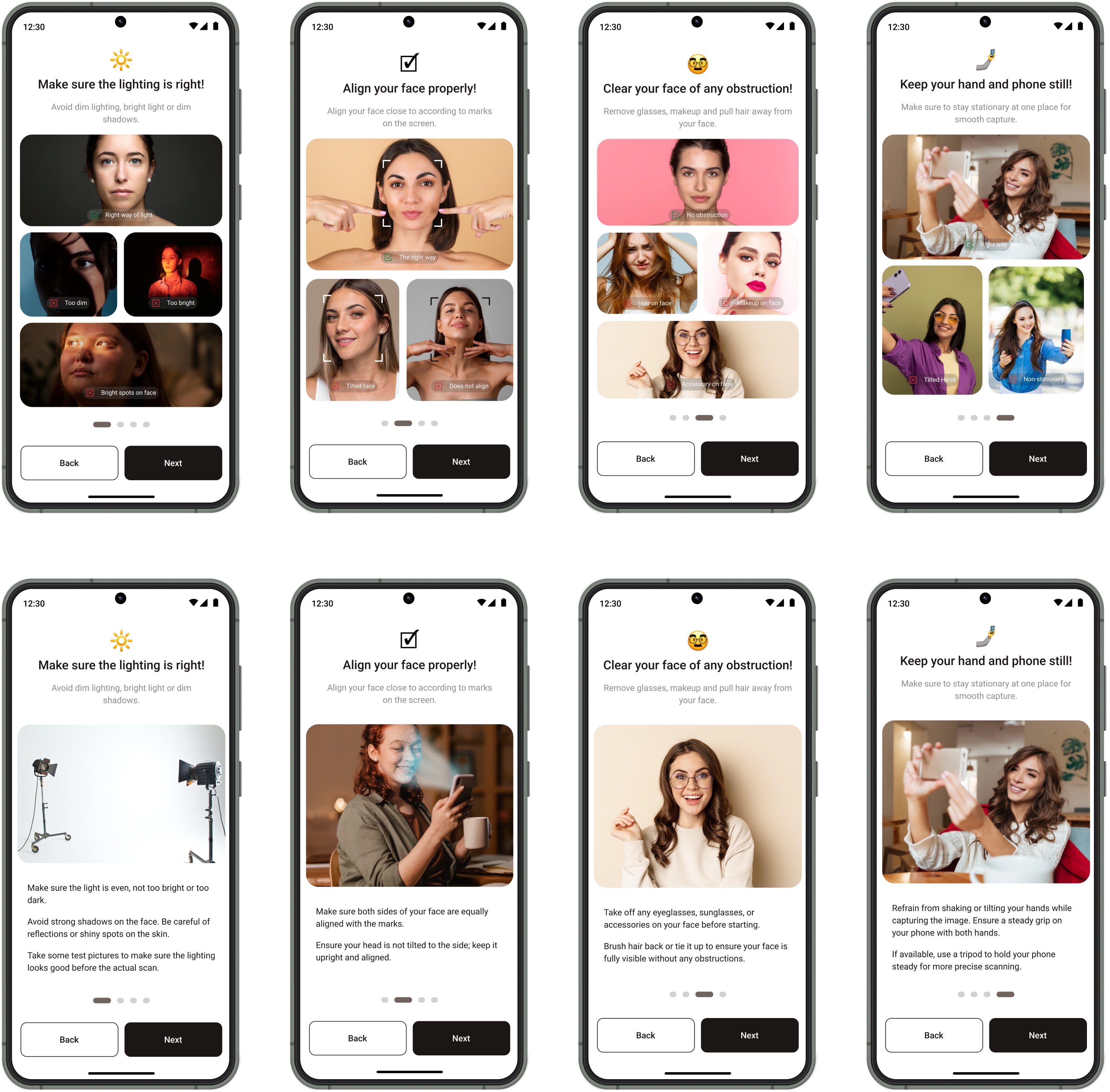 Allows users to easily navigate the app, understand the instructions for the face scan, and receive their shade recommendations effortlessly.