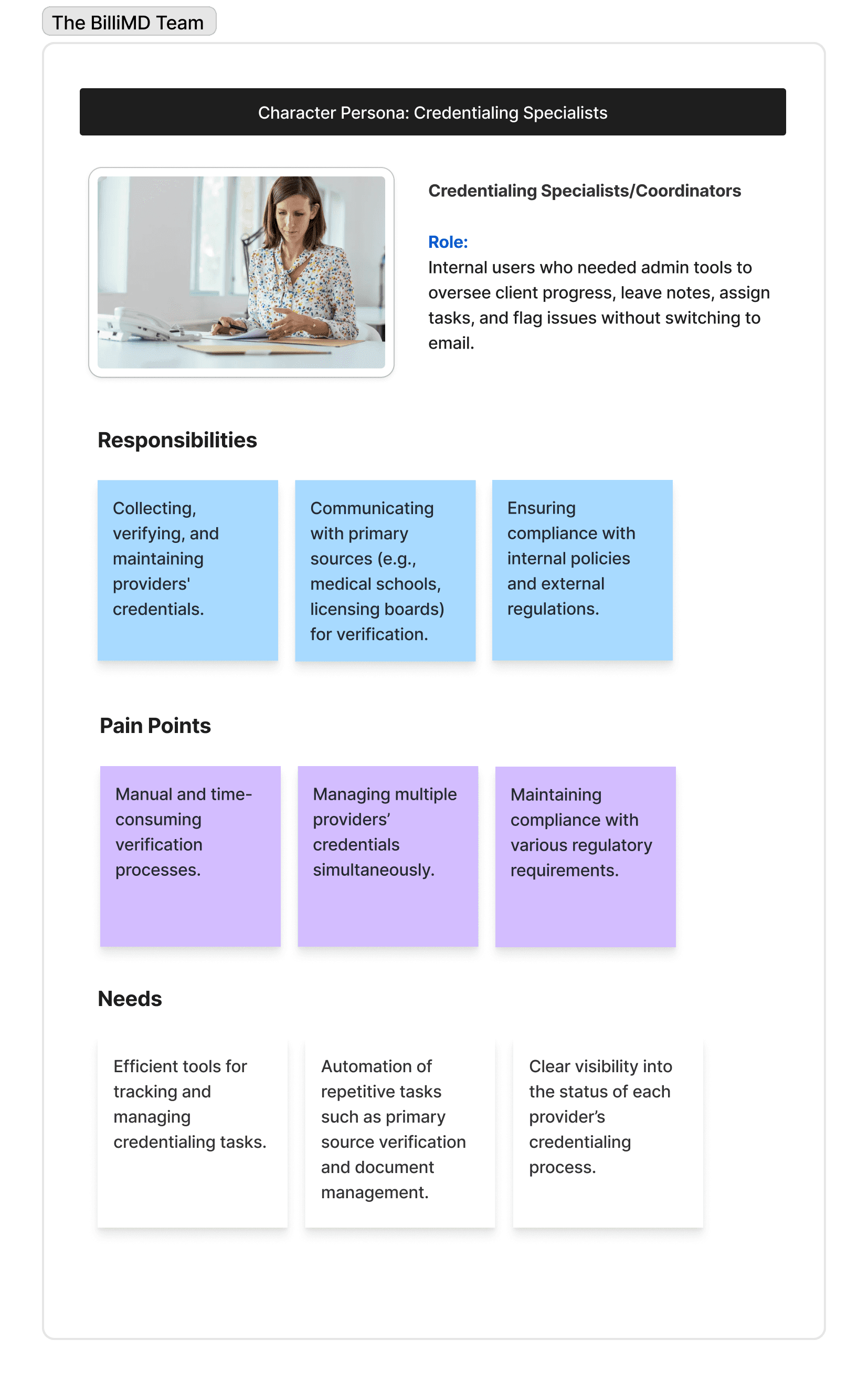 Before any wireframe was drawn, we defined the principles that would keep every decision grounded especially when navigating between user pain points and BilliMD's values.