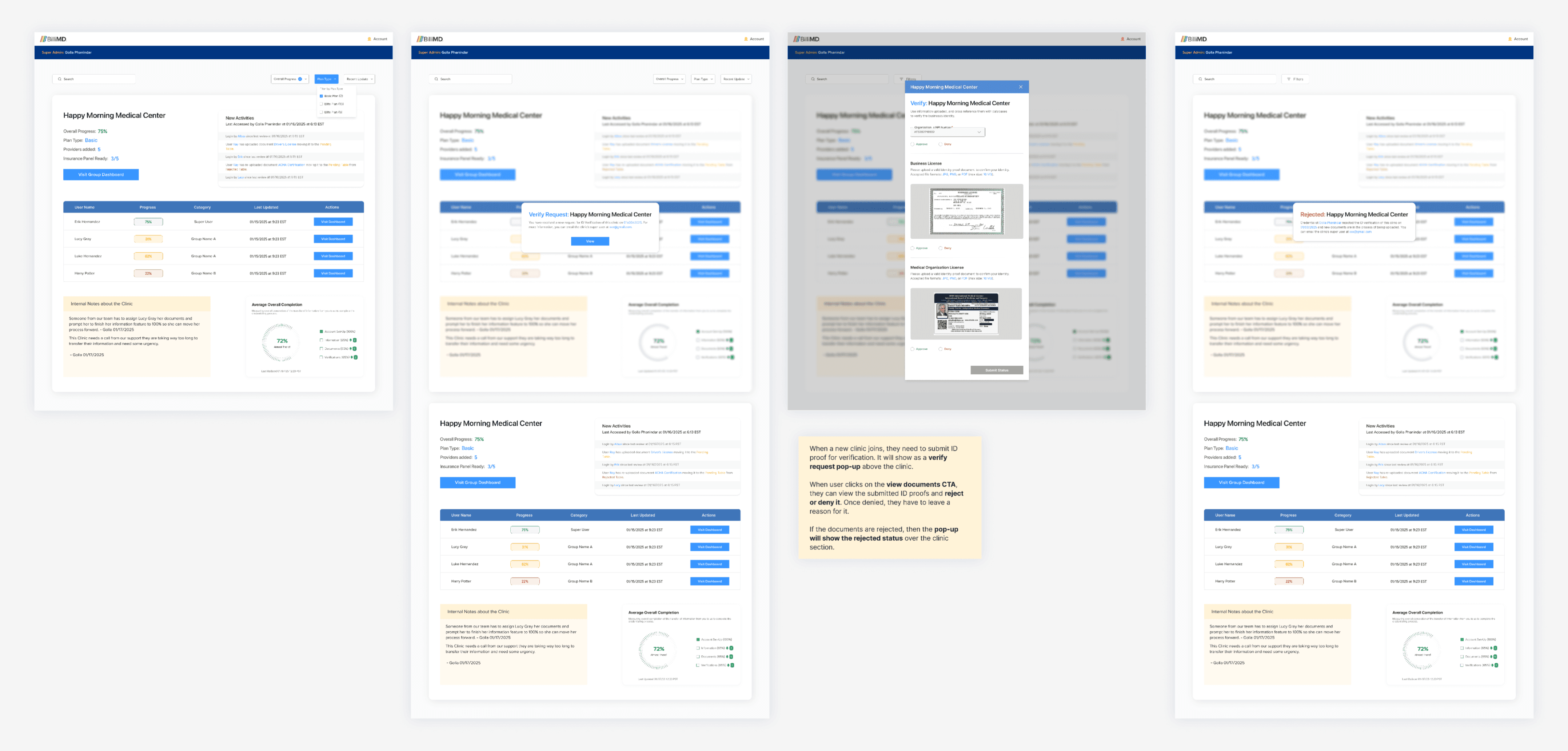 - Providers had no clarity on their progress or next steps. - Clinics managing multiple providers couldn’t track statuses. - The process felt opaque and stressful, especially for smaller practices.
