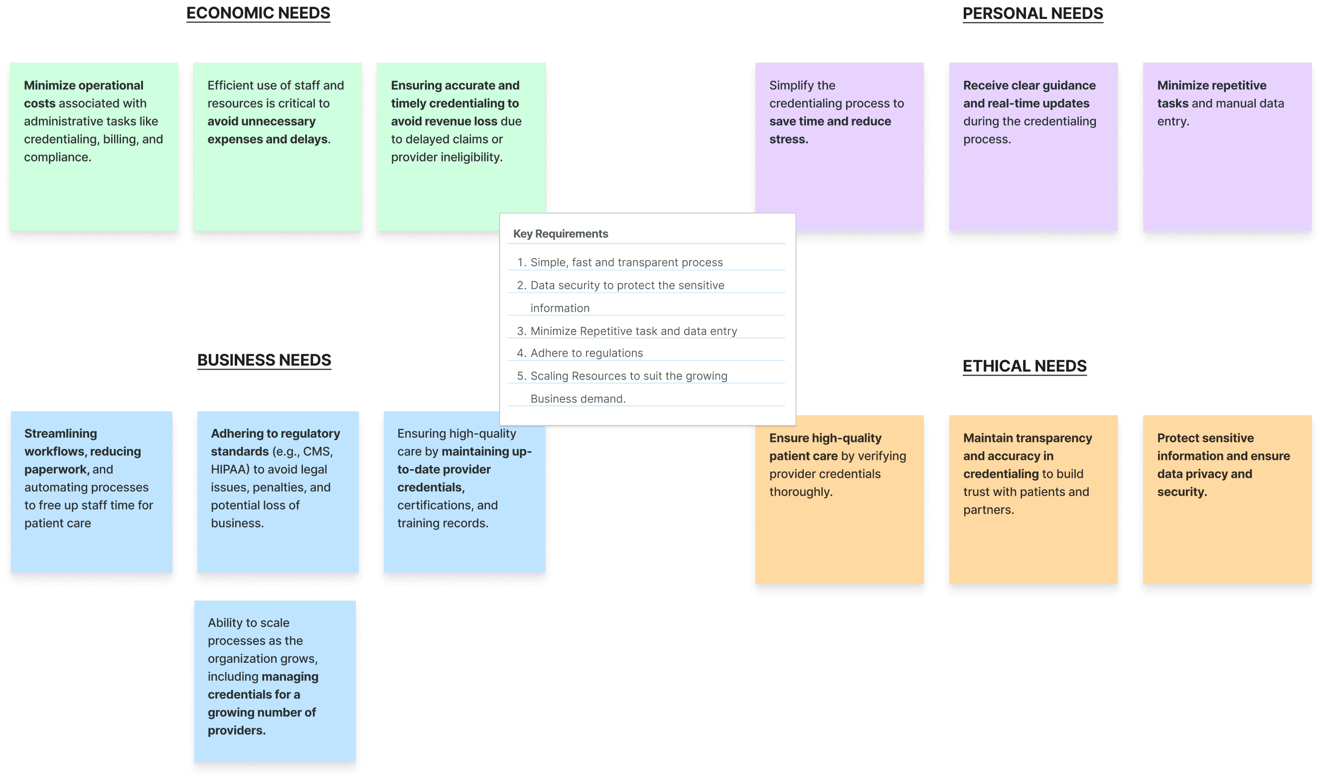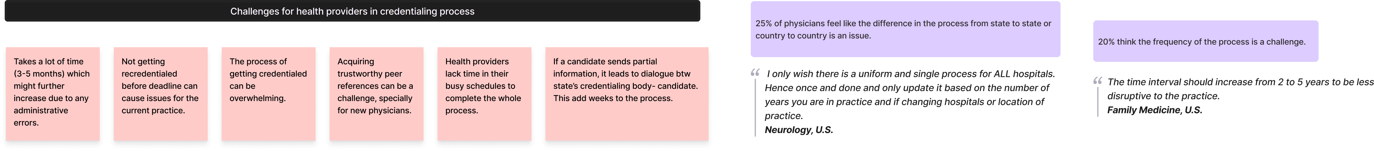 I did in-depth desk research to understand the medical credentialing process, the types of stakeholder's involved, their pain points and needs.