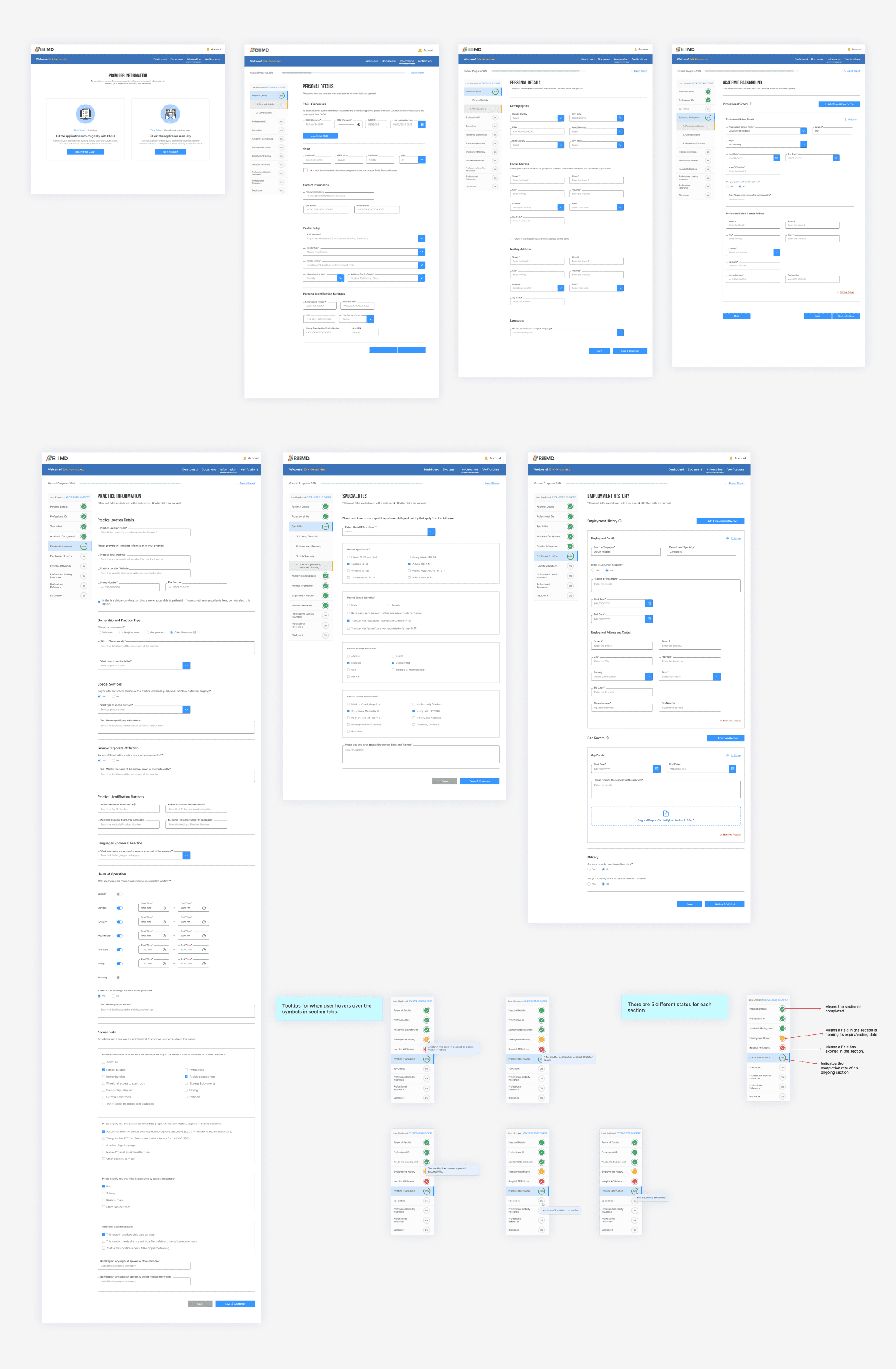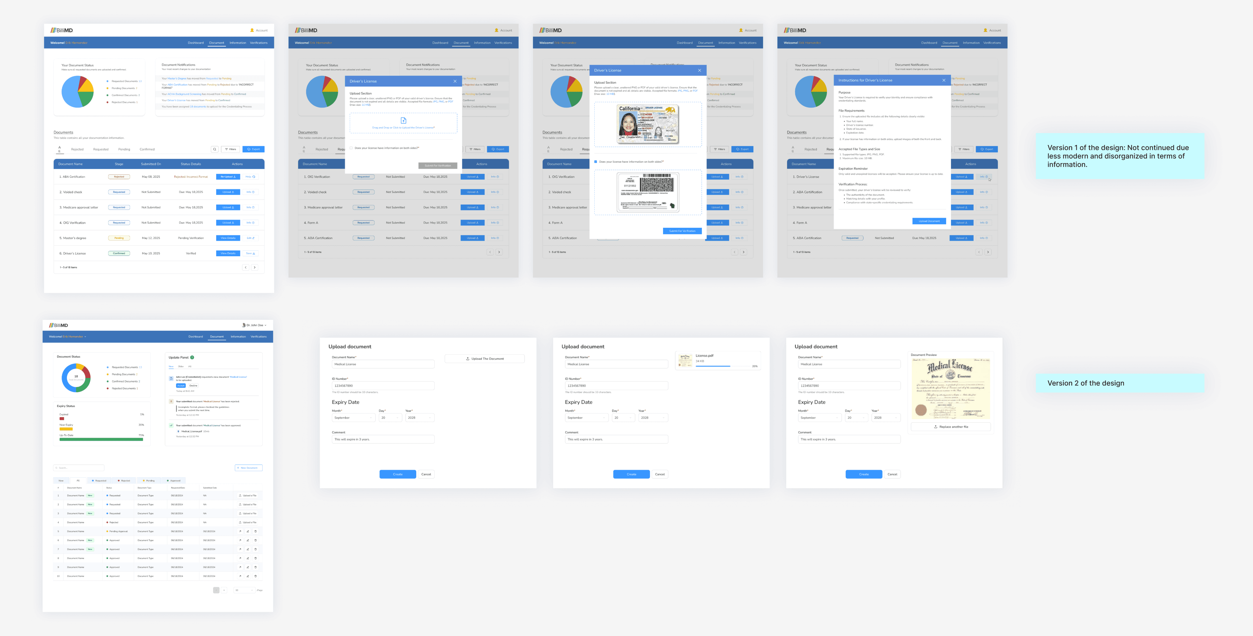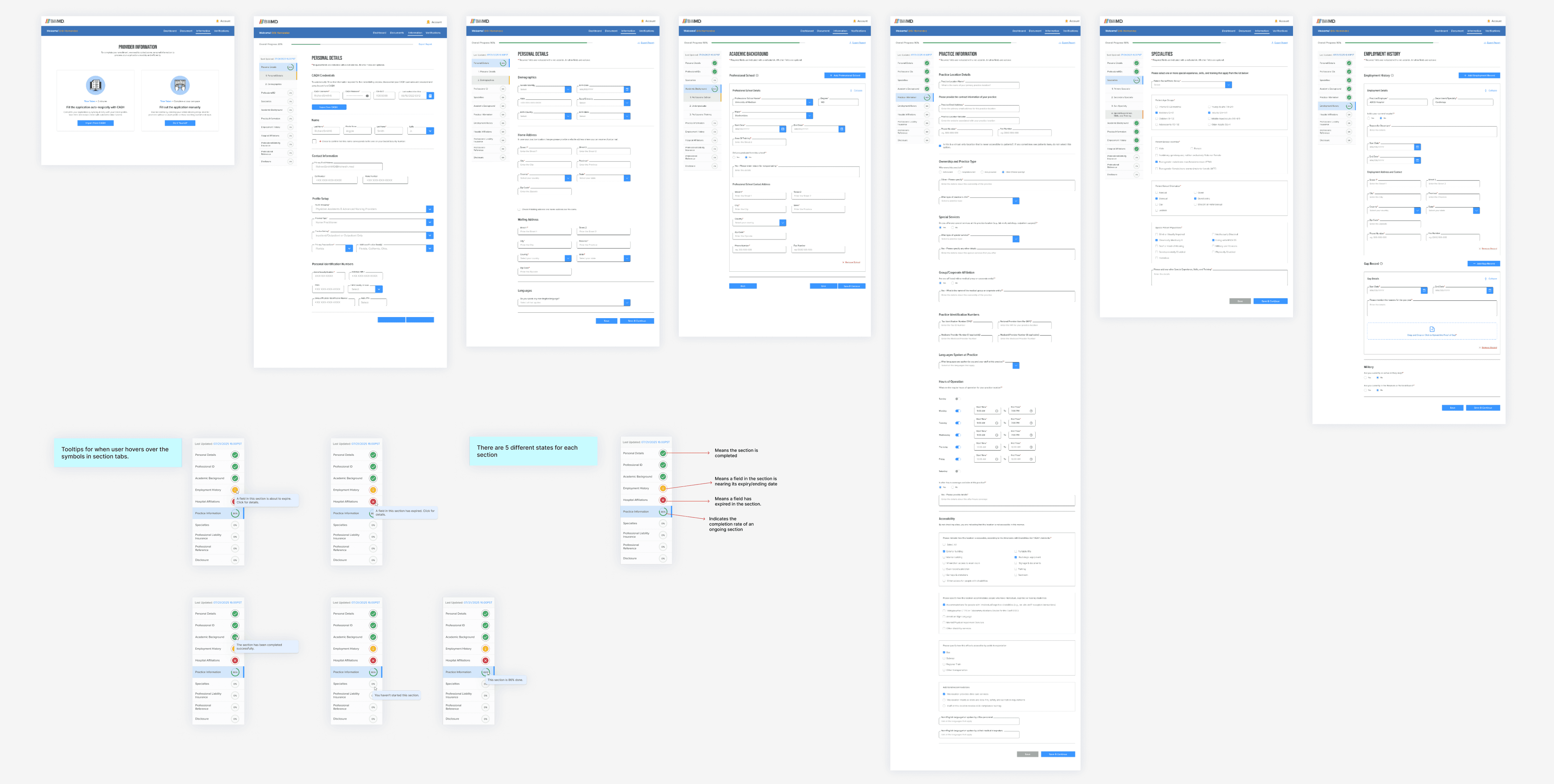 Credentialing involves multiple interconnected steps, forms, documents, verifications, and status tracking. I mapped these complex backend operations into an intuitive, modular structure that reflects how users naturally progress through credentialing.