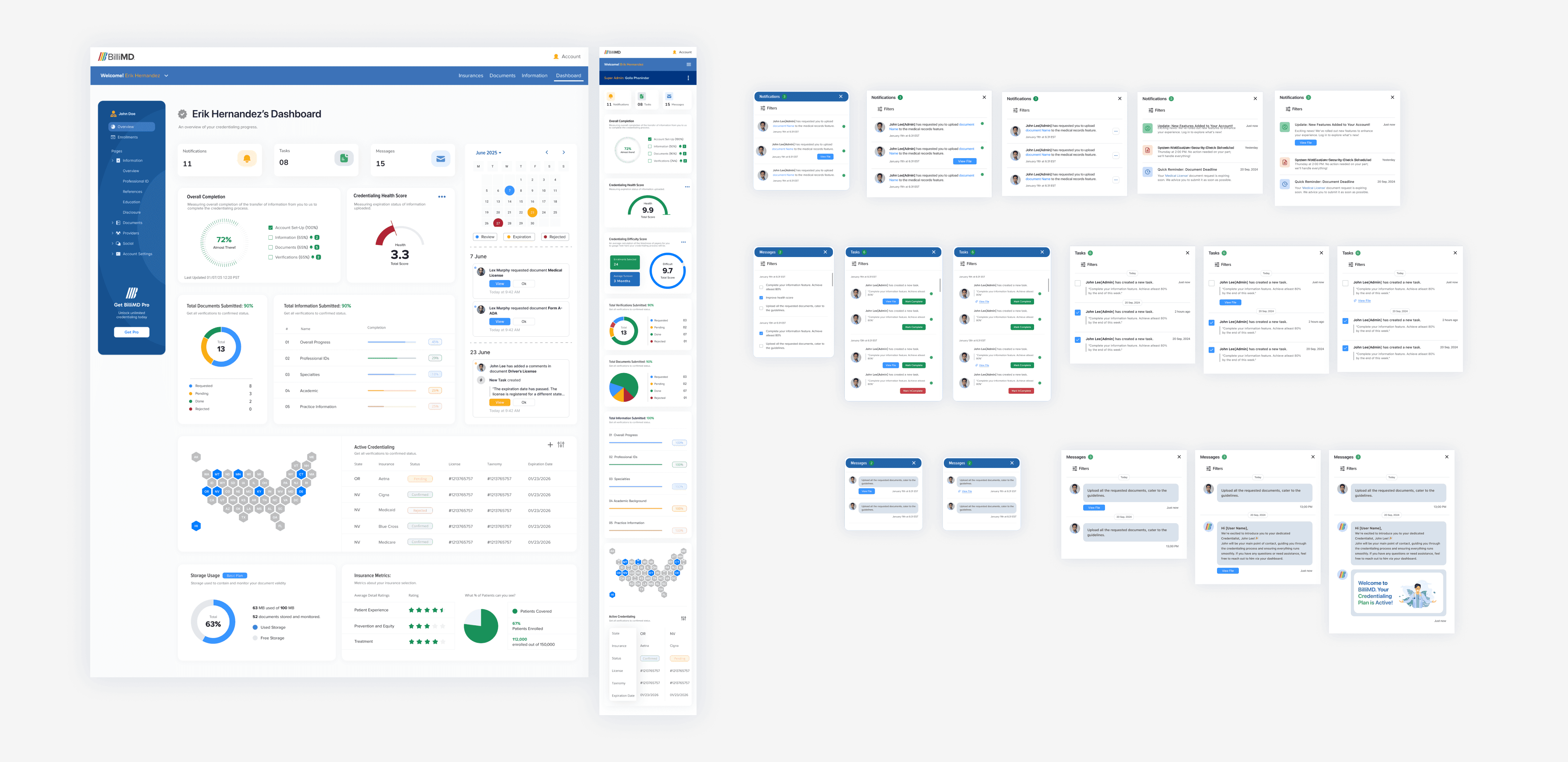 Credentialing involves multiple interconnected steps — forms, documents, verifications, and status tracking. I translated these complex backend operations into an intuitive, modular structure that reflects how users naturally progress through credentialing.
